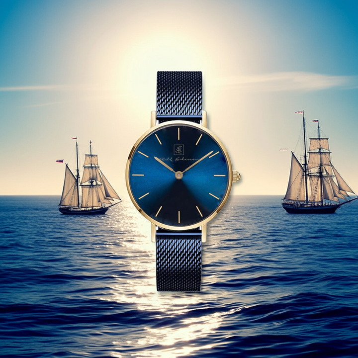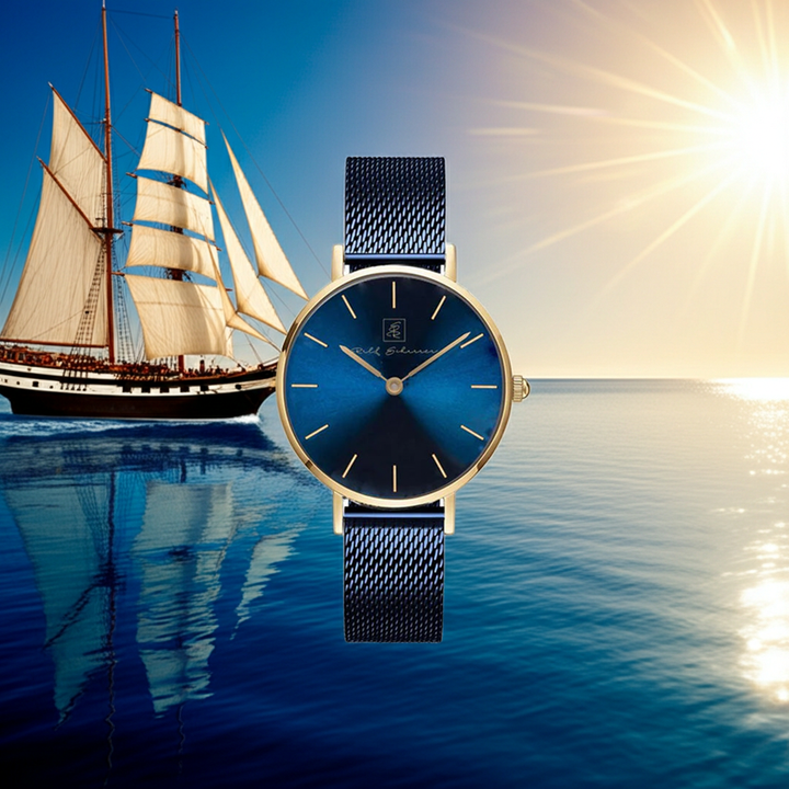 Diese Damenuhr kombiniert zeitlose Eleganz mit moderner Raffinesse. Das tiefblaue Zifferblatt wird von einem fein gearbeiteten Milanese Armband in passendem Dunkelblau ergänzt, was der Uhr eine schlichte, aber edle Note verleiht. Das filigrane Armband passt sich perfekt ans Handgelenk an und sorgt für einen angenehmen Tragekomfort, während das schlanke Gehäuse die Uhr feminin und leicht wirken lässt. Ob im Büro, beim Abendessen oder im Alltag – diese Damenuhr setzt stets stilvolle Akzente.