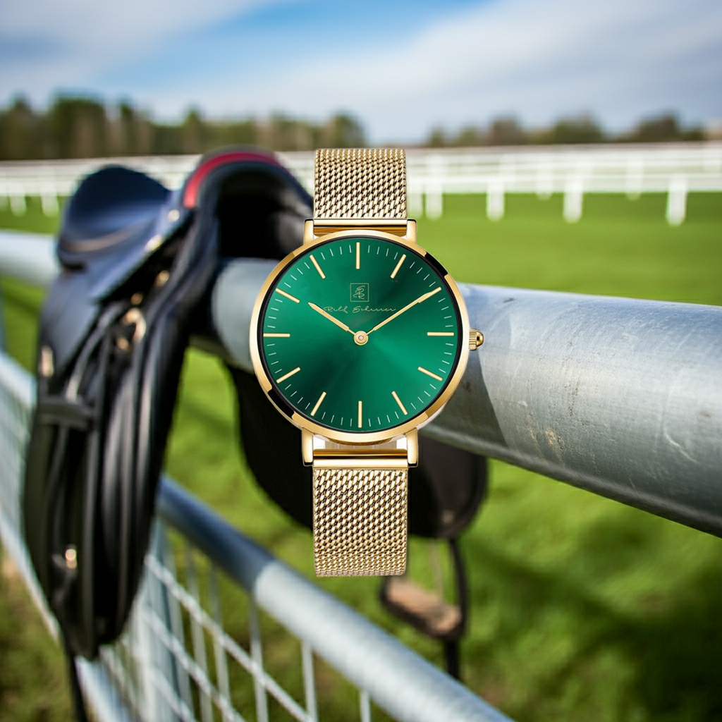 Dein Look- Upgrade! Damenuhr in Gold- Armband mit grünem Ziffernblatt “München” 32 mm
