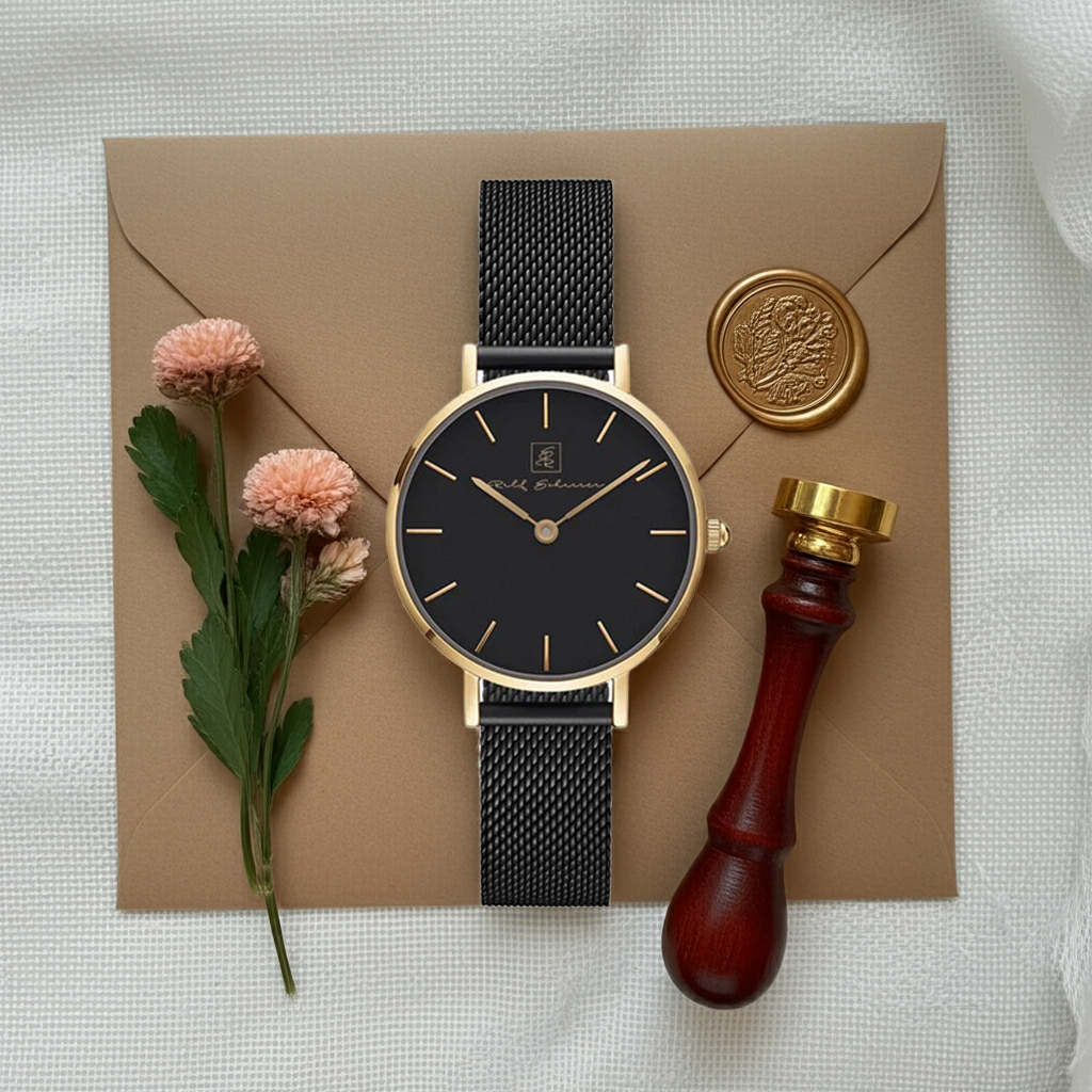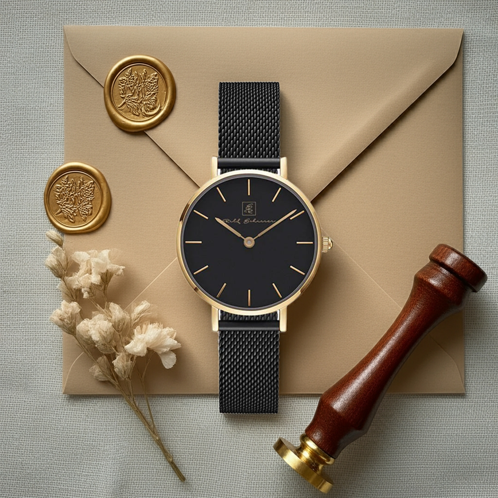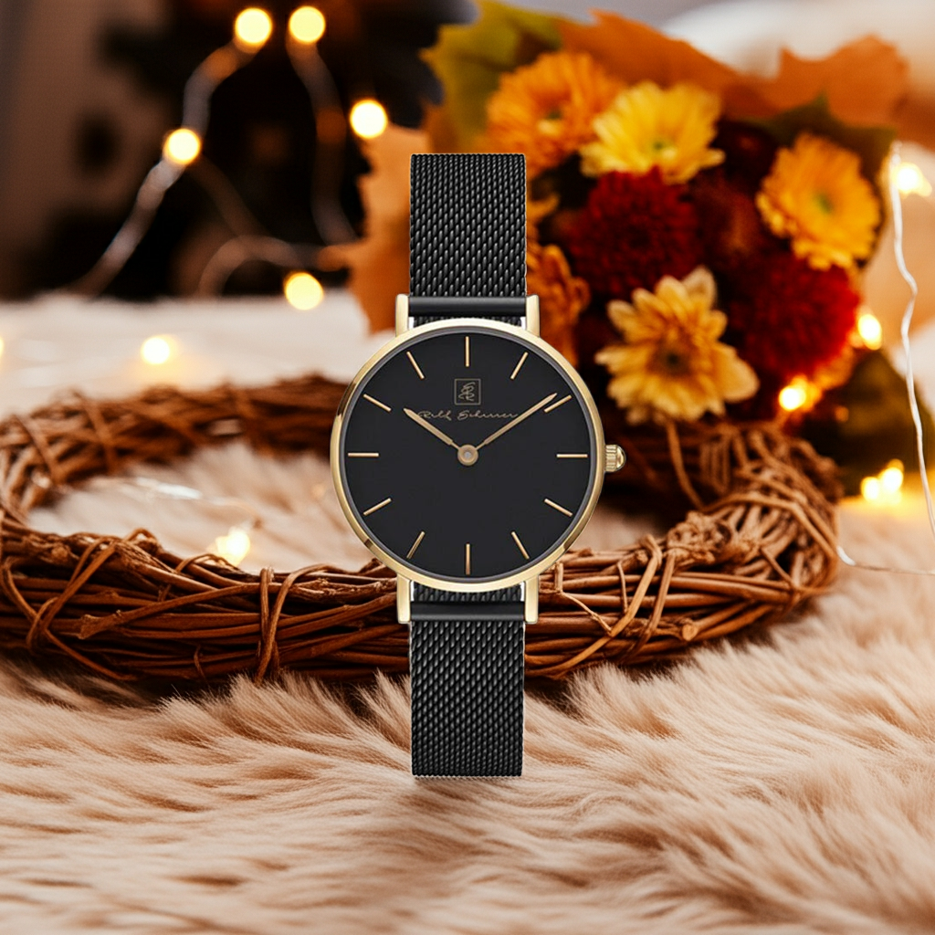 Die Damenuhr in schwarz Milanese rund besticht durch ihr minimalistisches Design und die klassische Form. Das feingliedrige Milaneseband in elegantem Schwarz verleiht der Uhr eine moderne und zugleich zeitlose Optik. Mit ihrem runden Gehäuse fügt sich die Uhr harmonisch an das Handgelenk und bietet eine klare, stilvolle Erscheinung, die zu jedem Outfit passt. Das schwarze Ziffernblatt unterstreicht den monochromen Look und sorgt für ein edles, reduziertes Design, das sowohl im Alltag als auch bei besonderen Anlässen überzeugt.