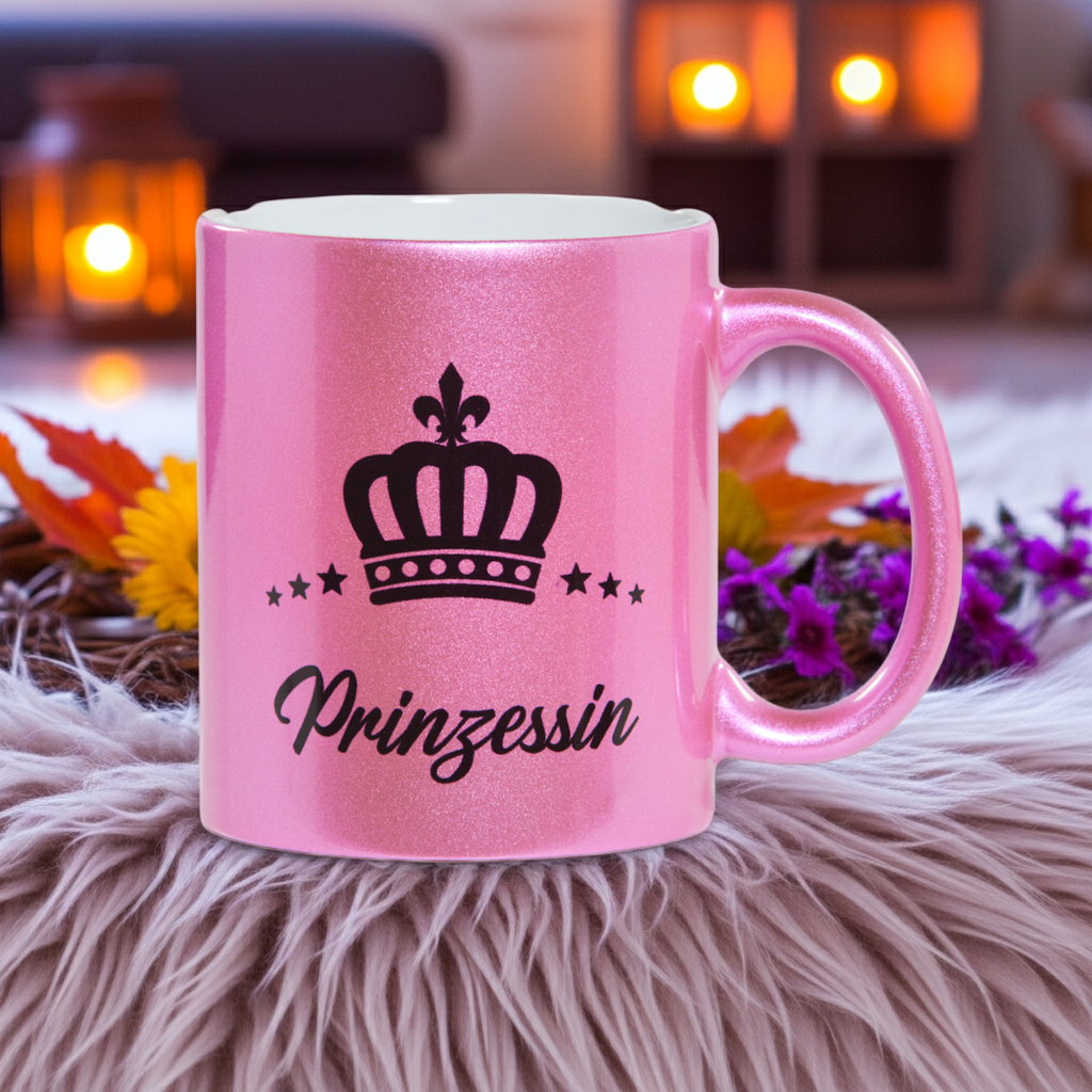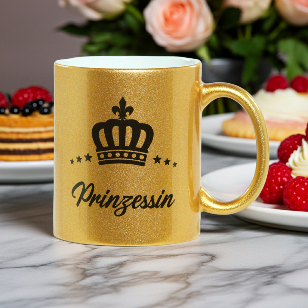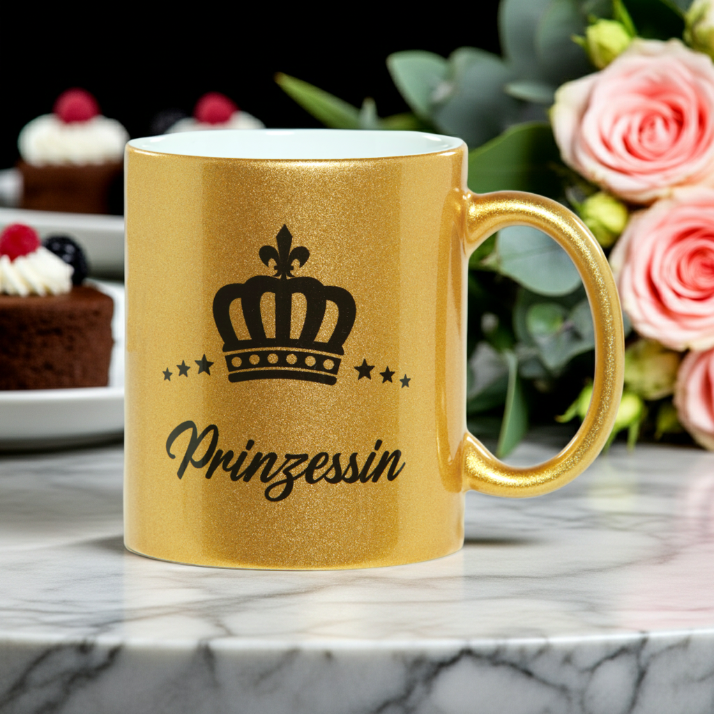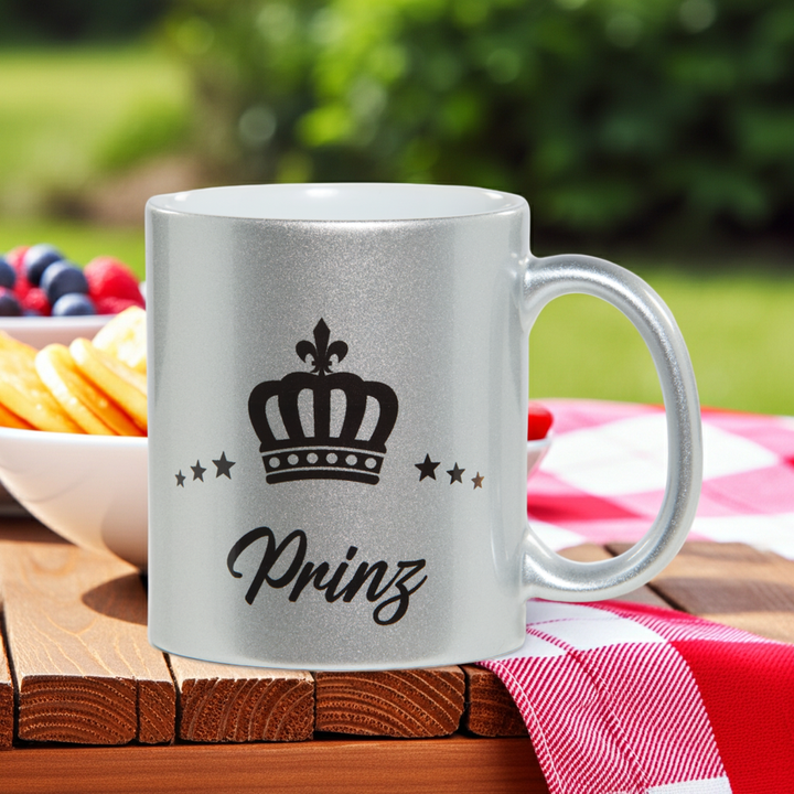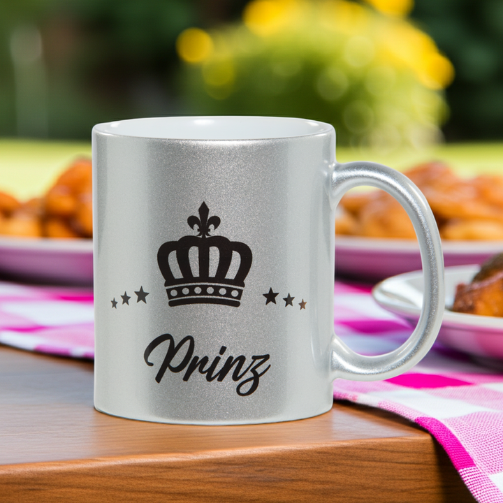 Der edle Ralf Scharrer Kaffee- und Teebecher ist ein echter Hingucker und sorgt schon am Morgen für königliches Flair. Mit einem Fassungsvermögen von 300 ml bietet er genug Platz für Kaffee, Tee oder Kakao. Erhältlich ist der Becher in funkelndem Gold, Pink oder Silber mit dem verspielten Aufdruck "Prinzessin" sowie in stilvollem Silber mit dem markanten Schriftzug "Prinz". Das hochwertige Glitzer-Design macht den Becher nicht nur zum täglichen Begleiter, sondern auch zu einem besonderen Geschenk für Familie und Freunde. Ob im Büro, zu Hause oder als Überraschung zum Geburtstag – dieser Becher sorgt garantiert für ein Lächeln. Durch die glänzende Verarbeitung wirkt das Design modern und auffällig, gleichzeitig bleibt der Becher robust und alltagstauglich. Dank seiner praktischen Größe passt er perfekt unter Kaffeemaschinen und ist ideal für den täglichen Gebrauch. Der Becher kombiniert trendigen Look mit Funktionalität und eignet sich besonders für alle, die ihr Lieblingsgetränk stilvoll genießen möchten. Mit dem "Prinzessin" oder "Prinz" Aufdruck ist er auch ein Symbol für Individualität und Spaß. So wird jeder Kaffee- oder Teegenuss zu einem kleinen Alltagshighlight.