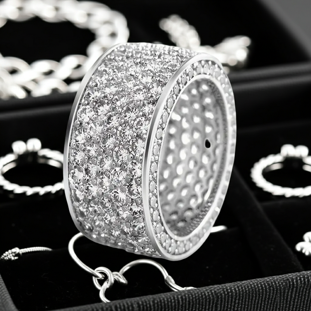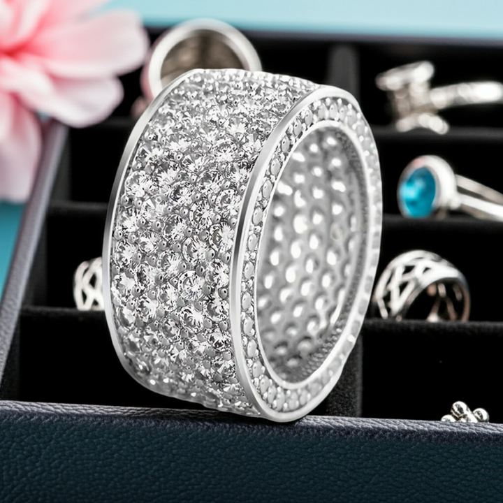 Modisch TOP! Unisex- Ring in Silberbeschichtung mit Zirkonia- Steinen 1 cm breit