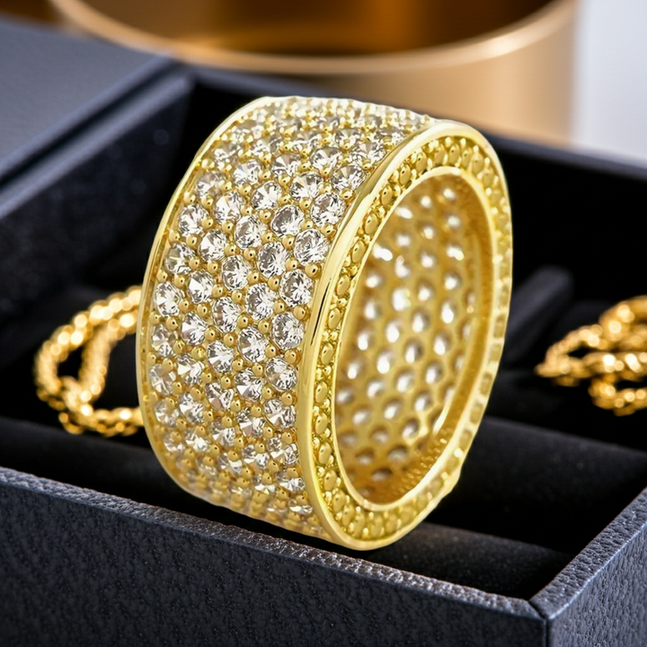 Modisch TOP! Zirkonia-Ring in Goldbeschichtung mit Zirkonia-Steinen 1 cm Breite