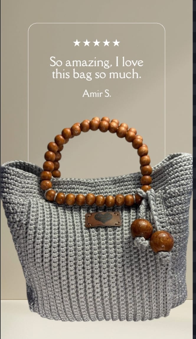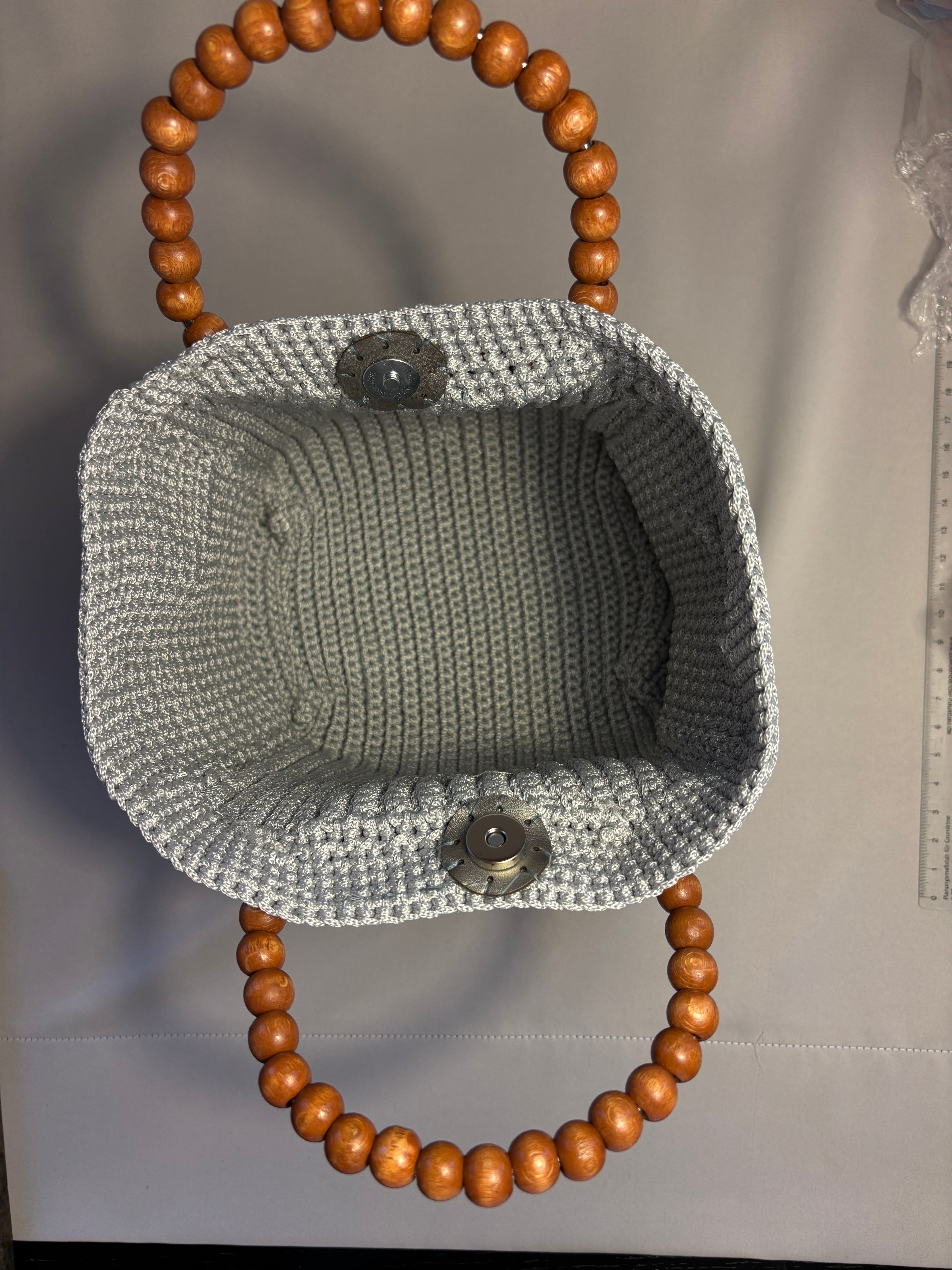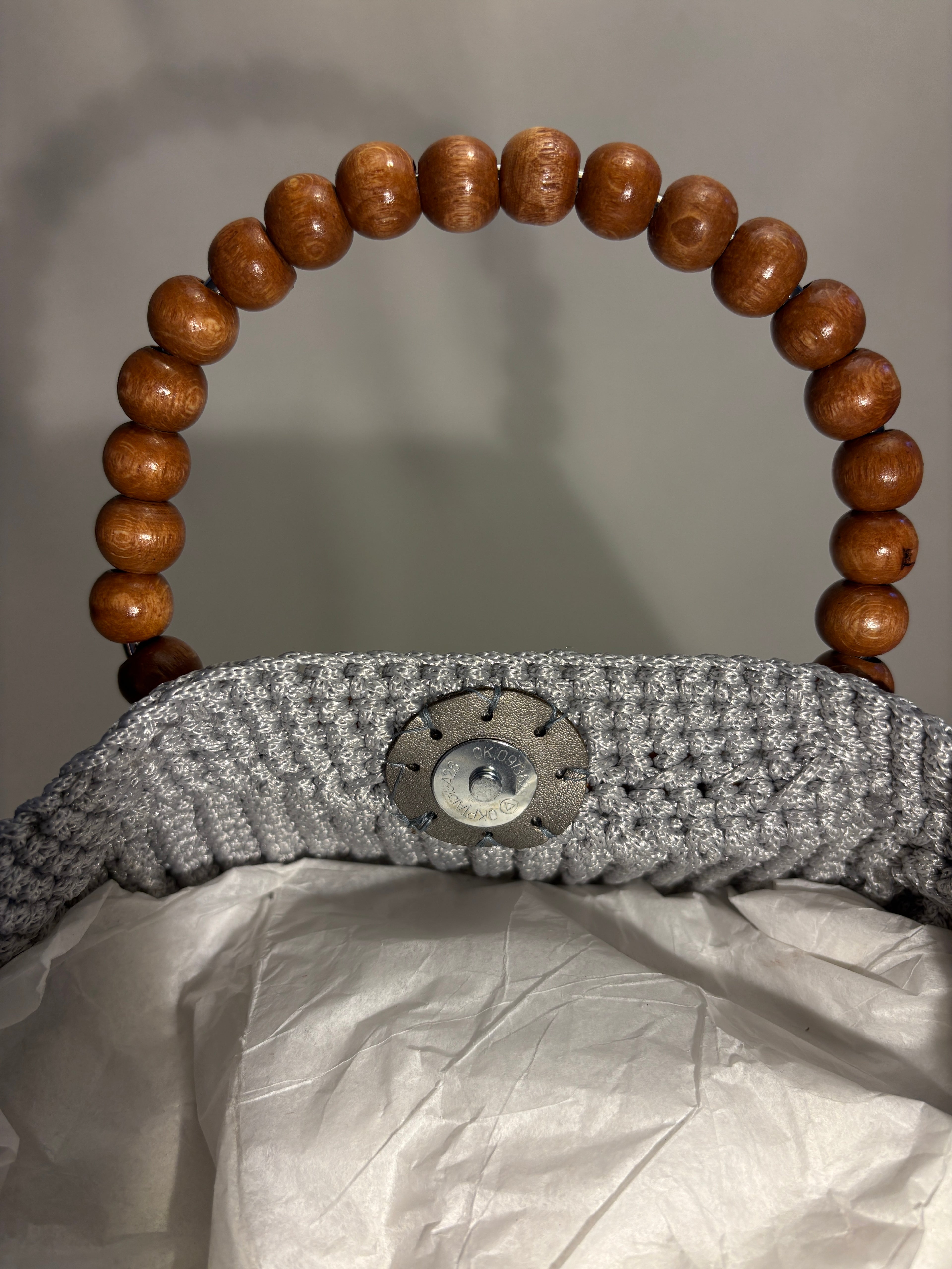 Entdecke diese exklusive gehäkelte Tasche, die in aufwendiger Handarbeit in Deutschland gefertigt wird. Dieses Stück ist ein echtes Unikat und besticht durch höchste Qualität und individuelle Details. Der natürliche Holzkugel-Griff verleiht der Tasche nicht nur eine elegante Optik, sondern sorgt auch für komfortablen Halt. Der praktische Magnet-Druckverschluss rundet das Design funktional und stilvoll ab.