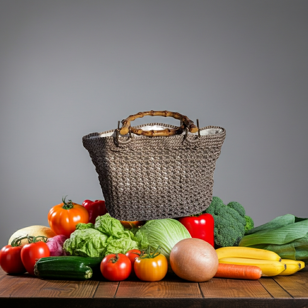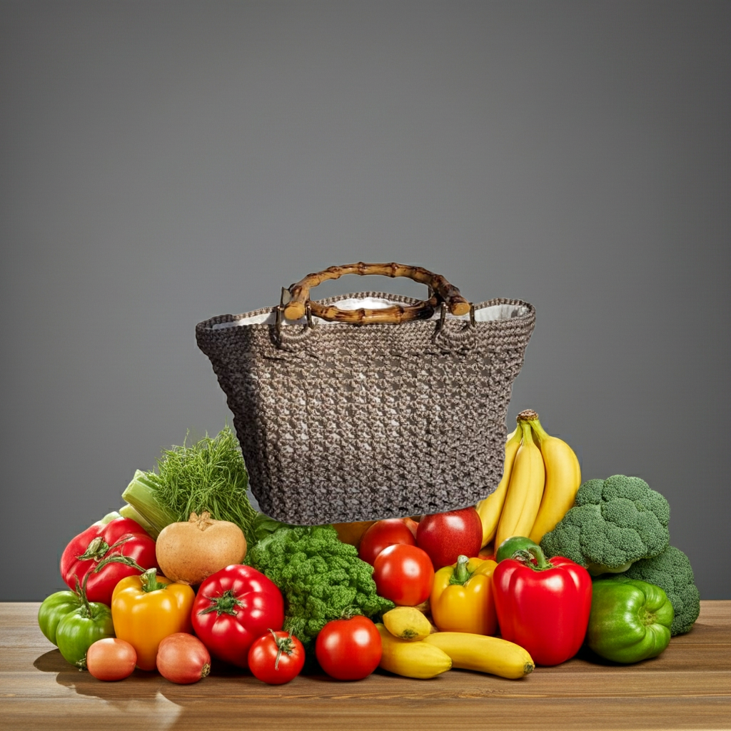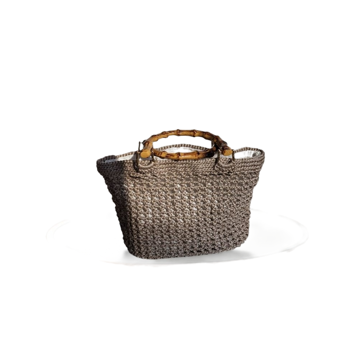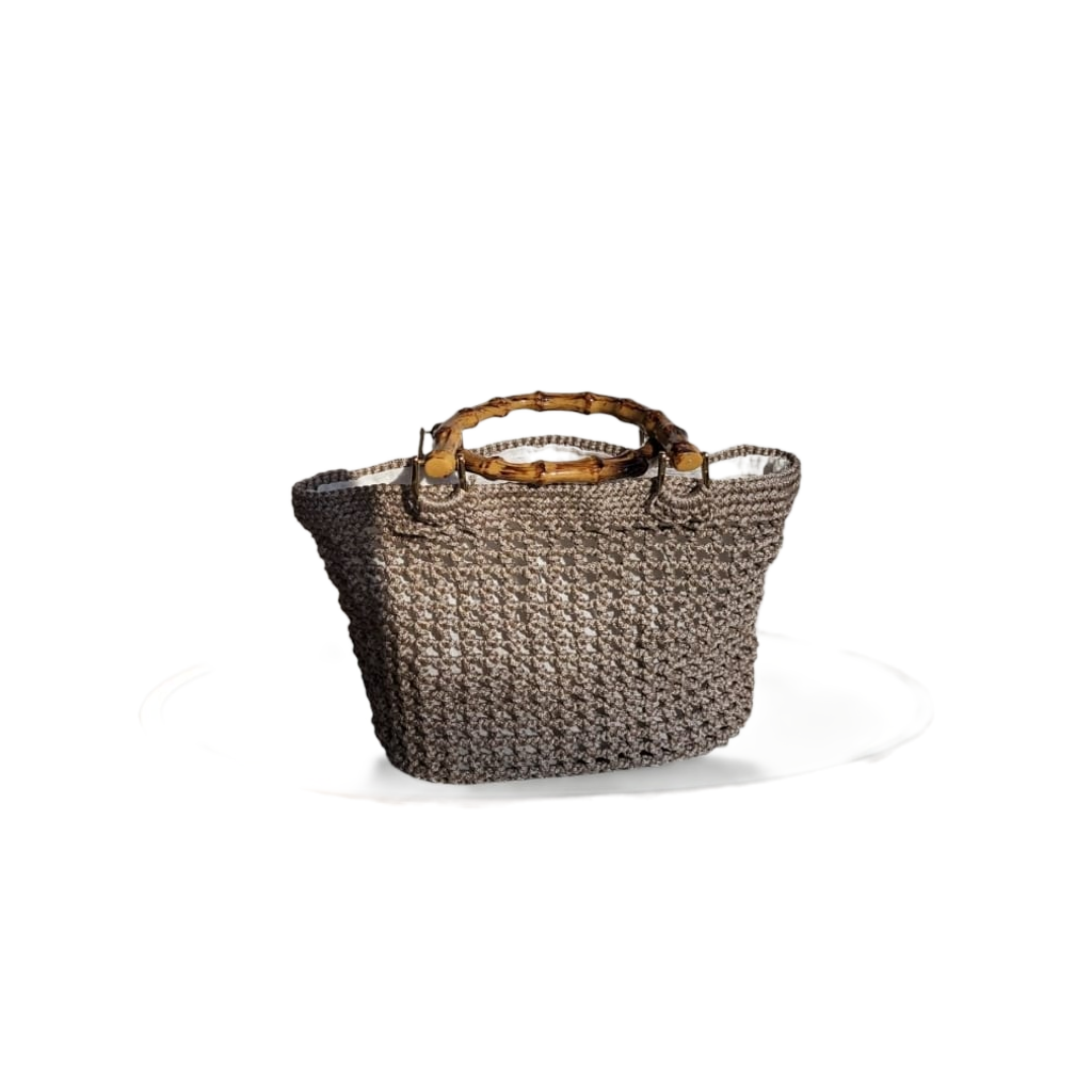 Diese stilvolle Handmade Bag vereint natürliche Materialien mit einzigartigem Design. Gefertigt aus hochwertiger Baumwolle und versehen mit einem edlen, ergonomischen Holzgriff, setzt sie ein klares Statement für nachhaltige Mode mit Anspruch. Die feine gehäkelte Struktur in modernem Gold-Beige verleiht der Tasche zeitlose Eleganz, während die dekorativen Details handwerkliche Kunst perfekt widerspiegeln.