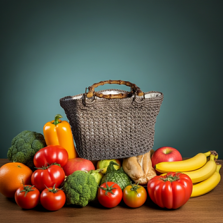 handgemachte Strick- Tragetasche in Grau für die stilvolle Frau