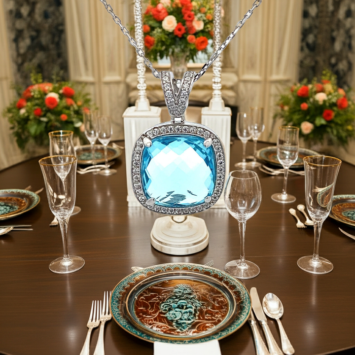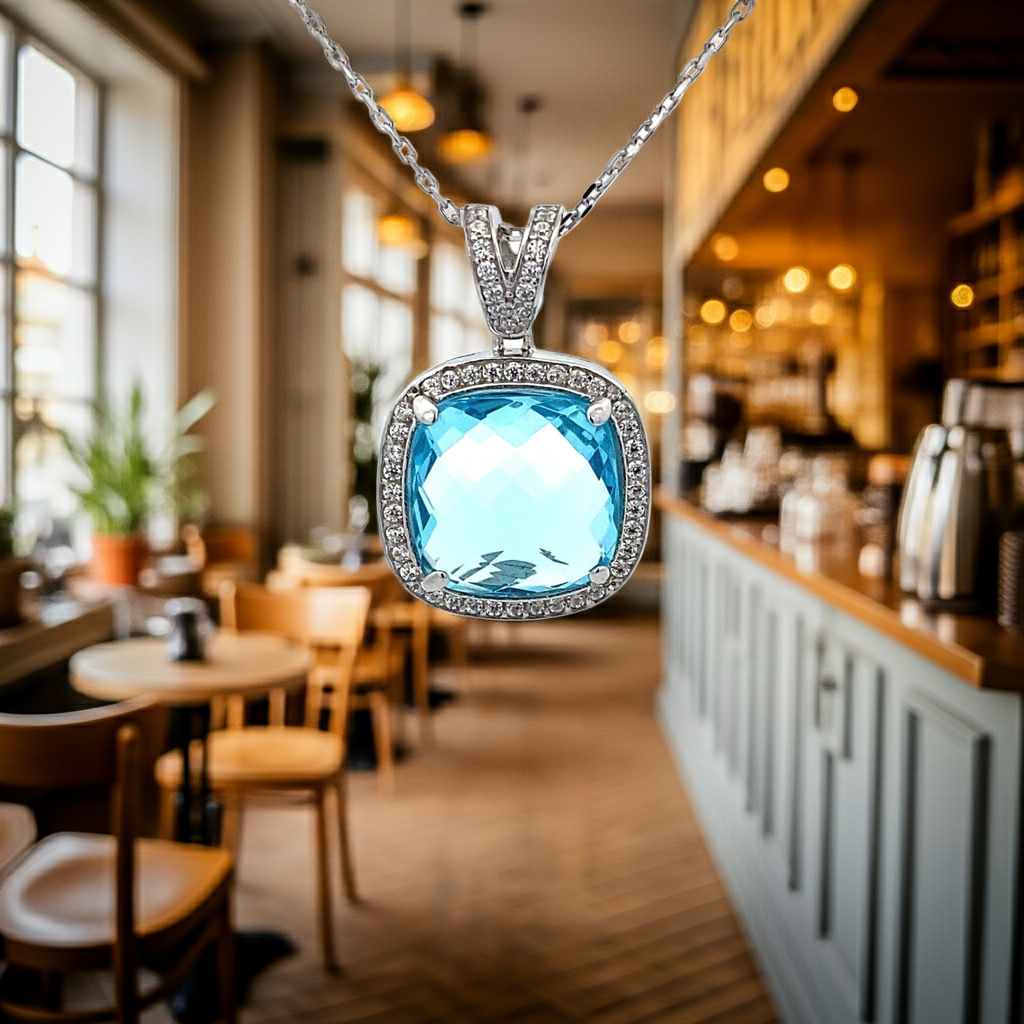 Ralf Scharrer meets Vinczena! exklusiver Anhänger/ Ankerkette mit hellblauem Zirkonia-Stein 925 Silber rhodiniert oder gelbvergoldet