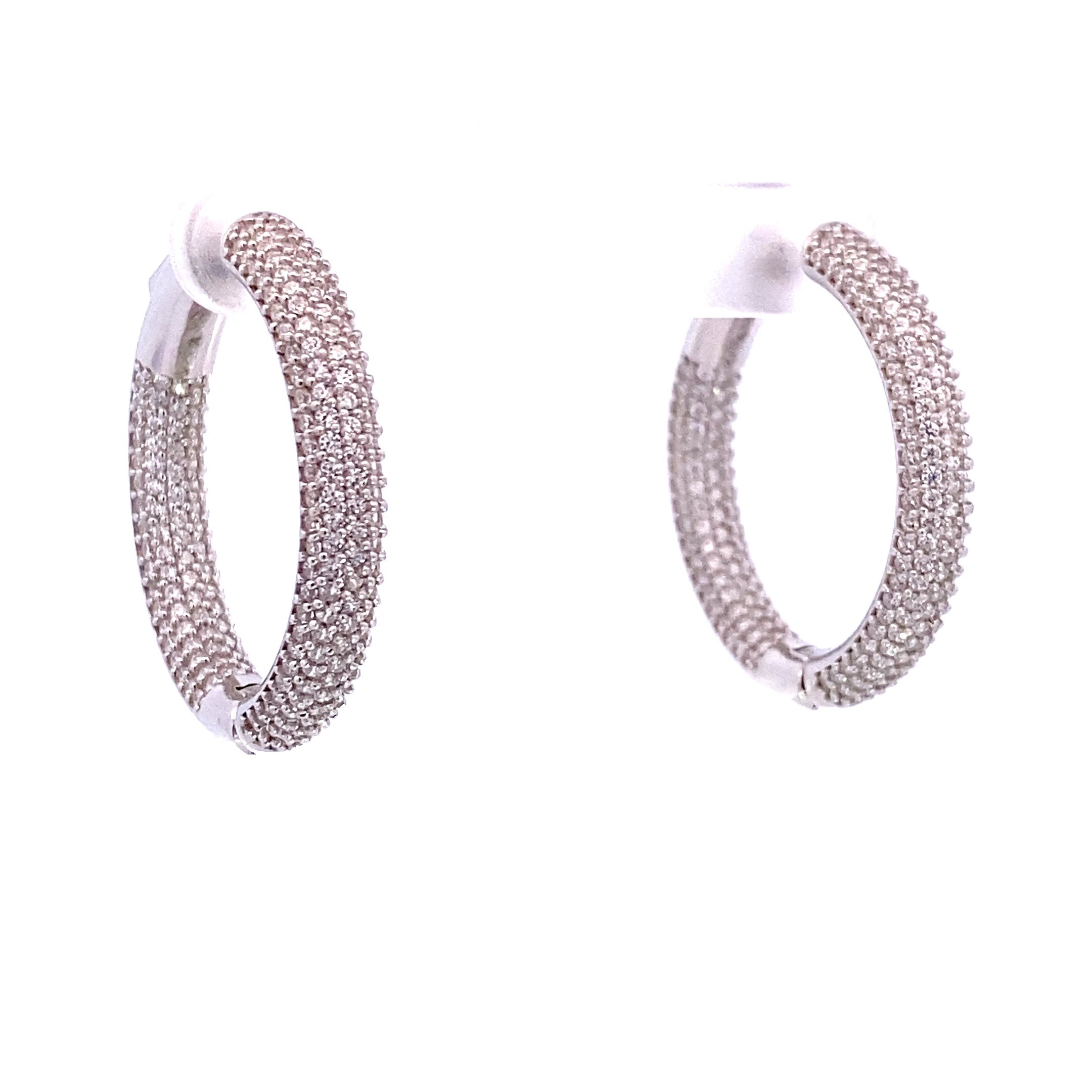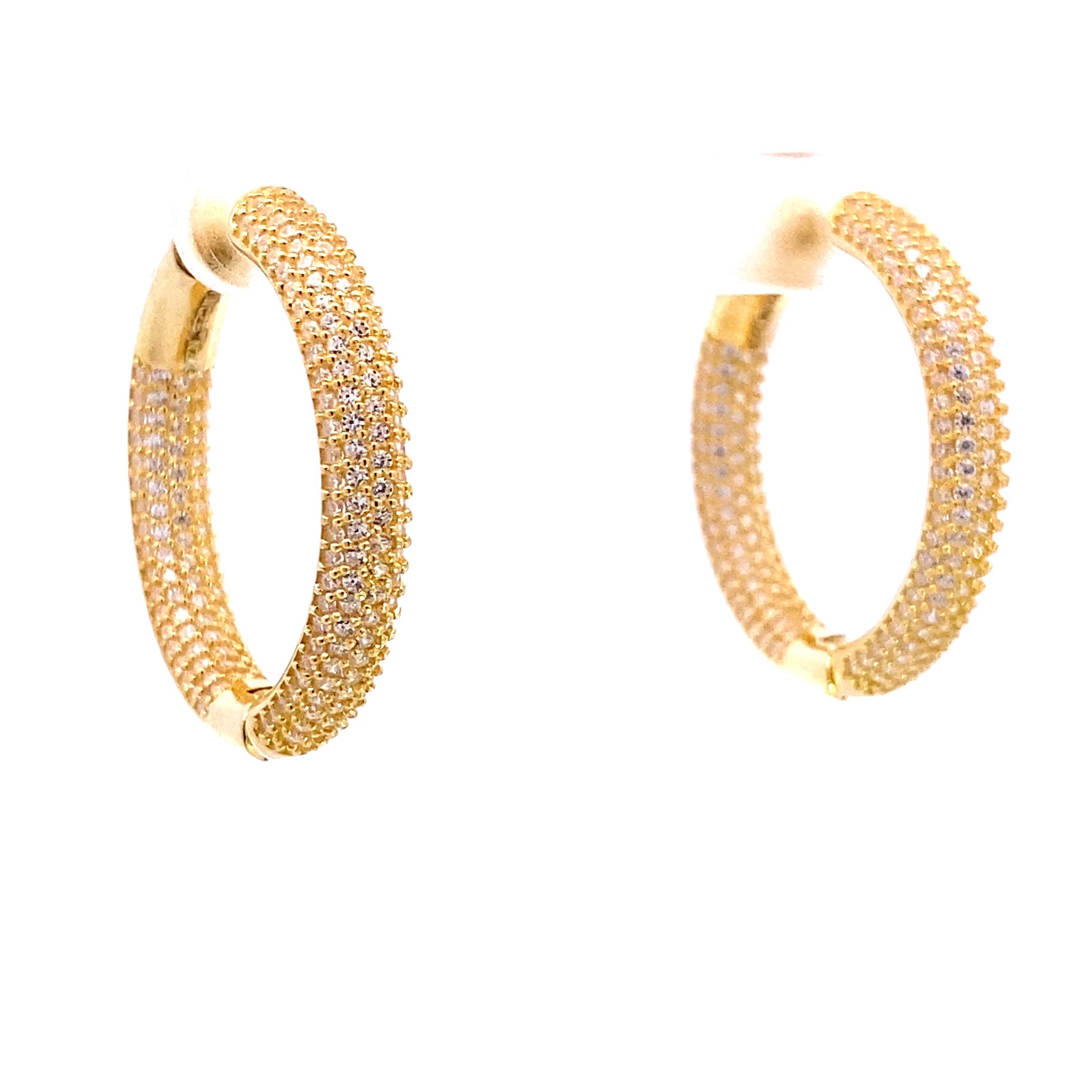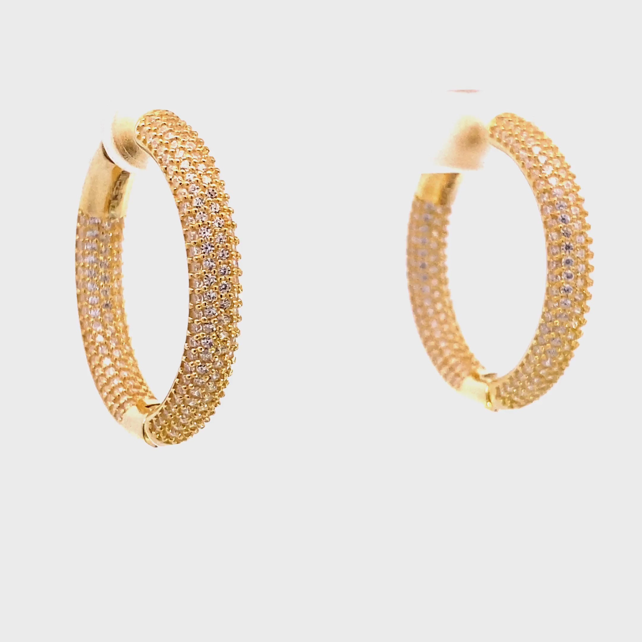 Die hochwertig gearbeiteten Ohrringe sind wahlweise aus 925 Silber, gelbvergoldet oder rhodiniert und vereinen klassische Formen mit modernem Glanz. Die zahlreichen weißen Zirkonia-Steine sind präzise gefasst und reflektieren das Licht bei jeder Bewegung, sodass ein luxuriöses Funkeln entsteht. Dank ihres praktischen Sicherheitsverschlusses sitzen die Kreolen zuverlässig und angenehm am Ohr.