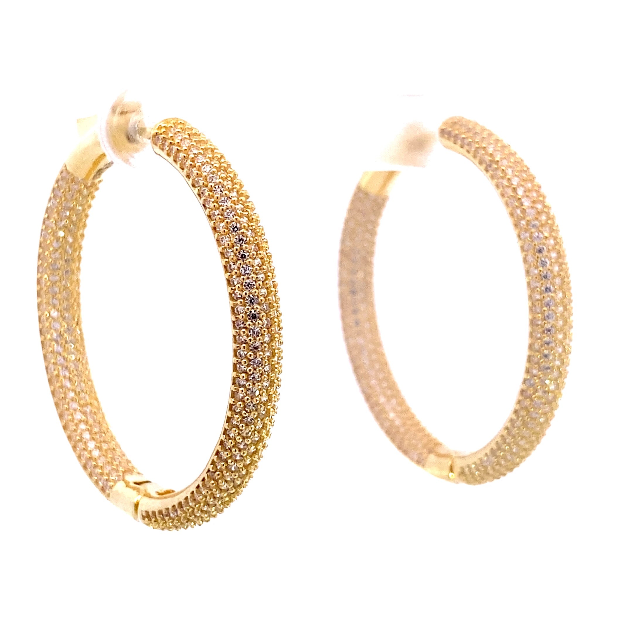 Die hochwertig gearbeiteten Ohrringe sind wahlweise aus 925 Silber, gelbvergoldet oder rhodiniert und vereinen klassische Formen mit modernem Glanz. Die zahlreichen weißen Zirkonia-Steine sind präzise gefasst und reflektieren das Licht bei jeder Bewegung, sodass ein luxuriöses Funkeln entsteht. Dank ihres praktischen Sicherheitsverschlusses sitzen die Kreolen zuverlässig und angenehm am Ohr.