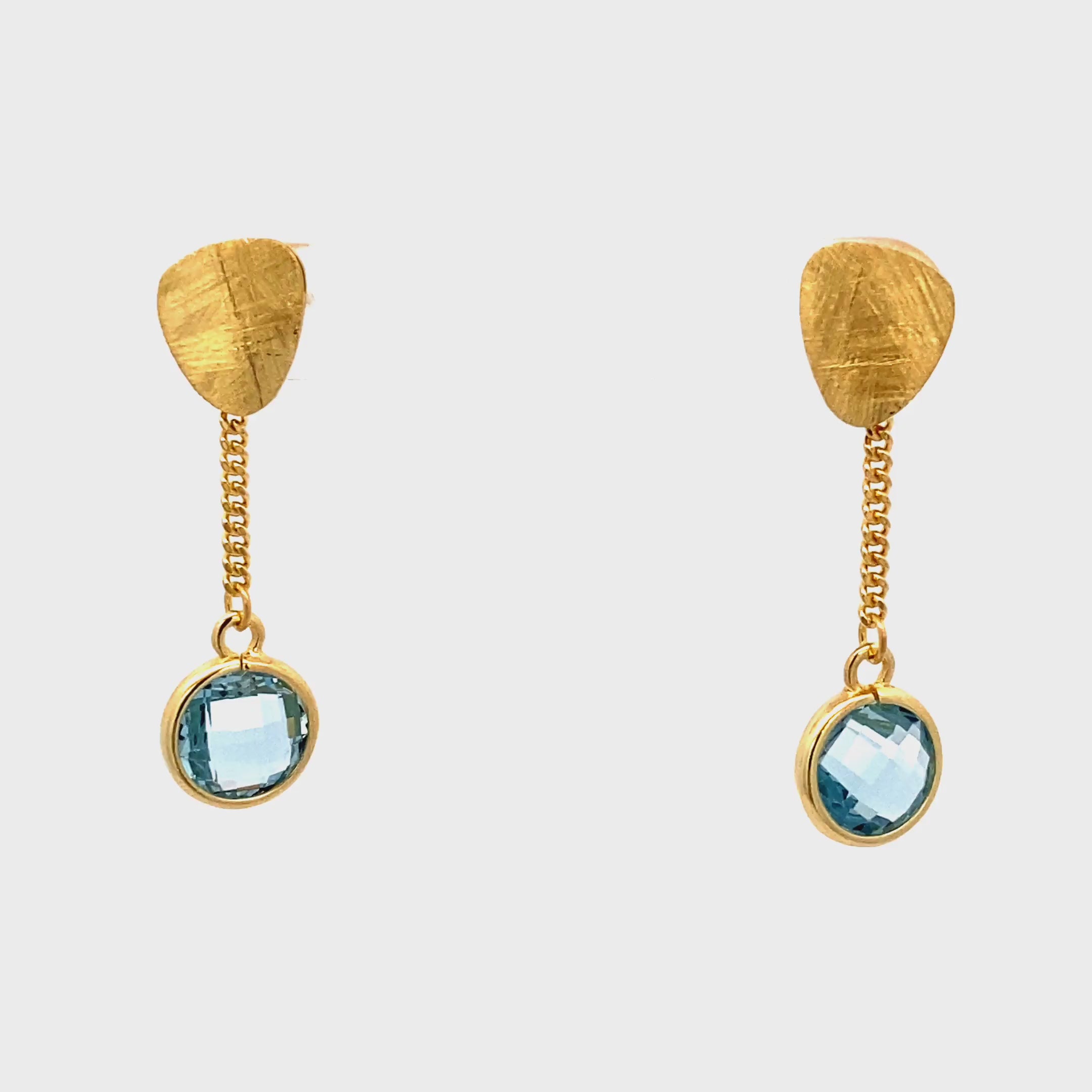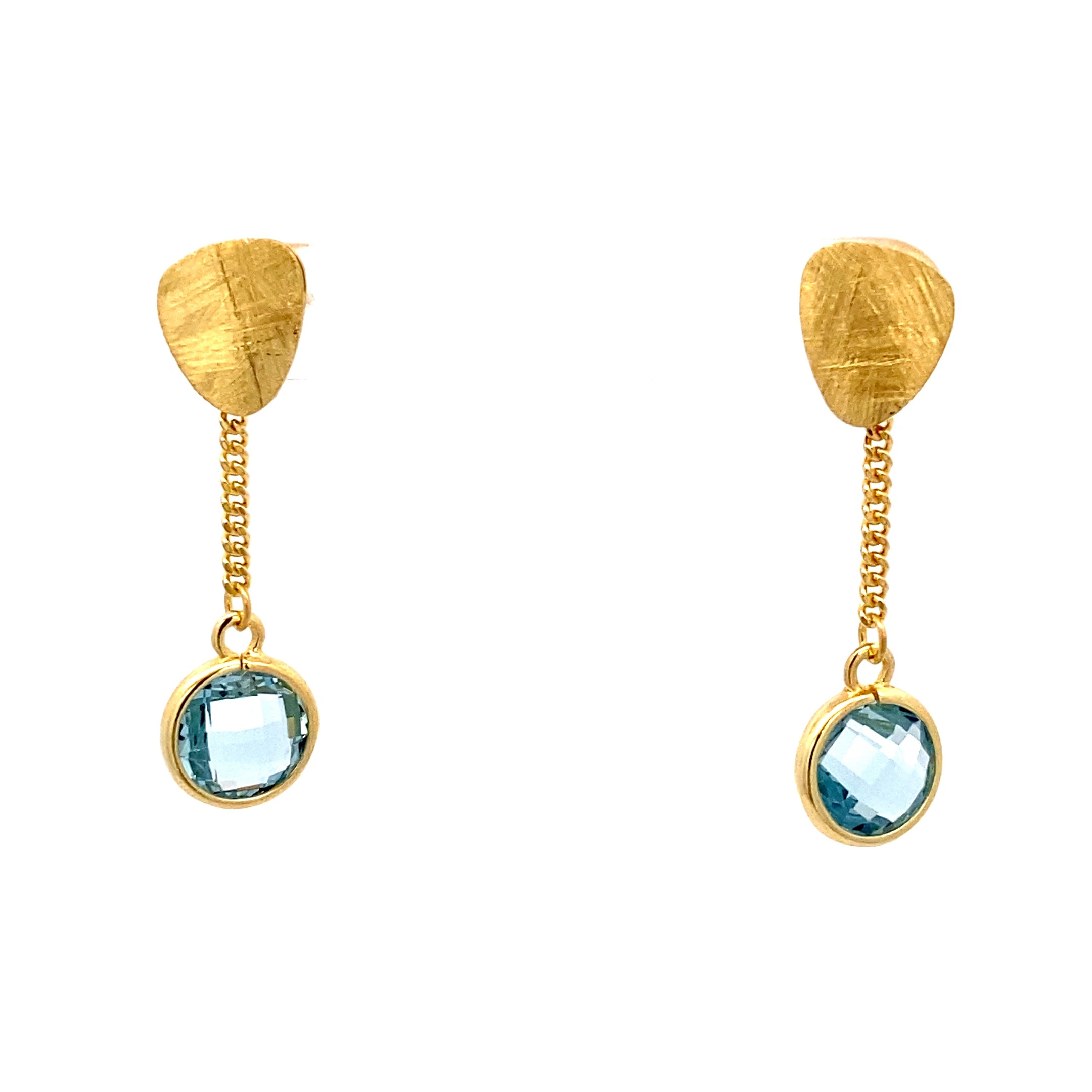 Ralf Scharrer meets Vinczenza! eleganter Ohranhänger 925 Silber, gelbvergoldet mit runder hellblauer facettierter Topase