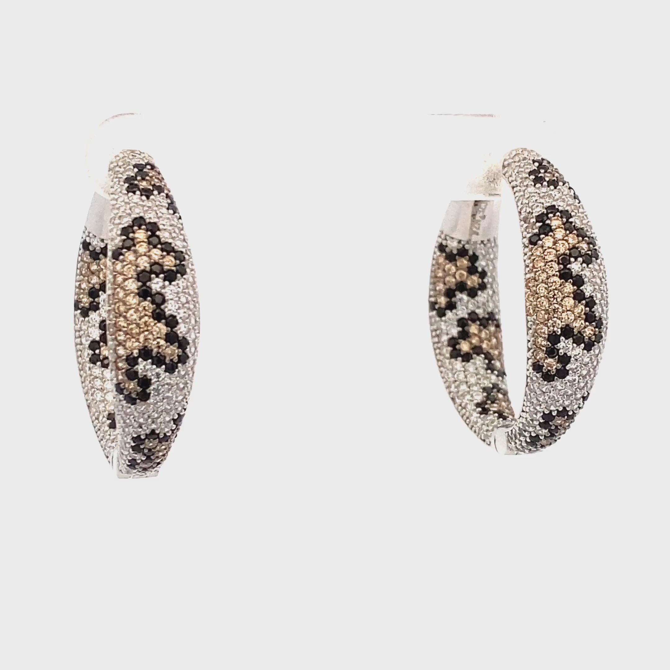 Die Creole "Leo" ist ein exklusiver Creole Ohrring im modernen Design, gefertigt aus hochwertig 925 Silber, rhodiniertem Material. Durch die Rhodinierung erhält der Ohrschmuck eine edle Oberfläche, die dauerhaft glänzt und optimal vor Anlaufen schützt. Mit einem Außendurchmesser von 27 mm und einer Breite von 7 mm wirkt die Creole markant und gleichzeitig elegant. Eingearbeitete Zirkonia-Steine in Weiß, Schwarz und Champagner setzen faszinierende Akzente und verleihen dem Schmuckstück einen glamourösen Animal-Style. Als edler Zirkonia Ohrschmuck passt die Creole perfekt zu festlichen Outfits, aber auch als Statement im Alltag. Der praktische Sicherheitsverschluss sorgt für hohen Tragekomfort und ein sicheres Gefühl. Jeder Blick auf die funkelnden Farbkontraste macht die Creole zu einem echten Highlight. Mit ihrer detailverliebten Verarbeitung ist sie ein stilvolles Accessoire für trendbewusste Frauen. Die Kombination aus edlem Glanz und ausdrucksstarkem Design macht diese rhodinierten Ohrringe zu einem Must-have. Entdecke die Creole "Leo" als Ohrschmuck, der Eleganz, Glamour und Individualität vereint.