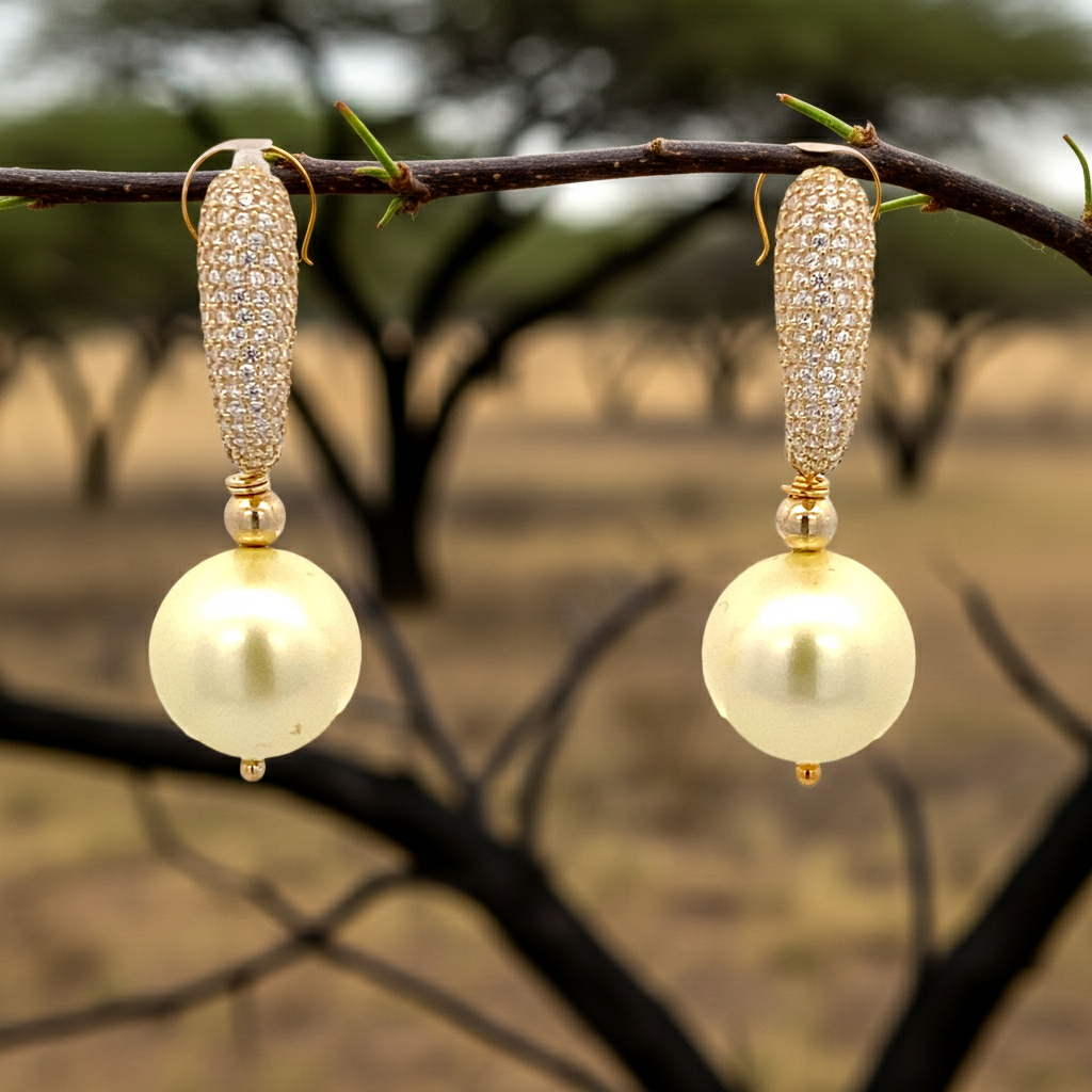 Steine: Weißer Zirkonia-Stein, Muschelperle in Gelb