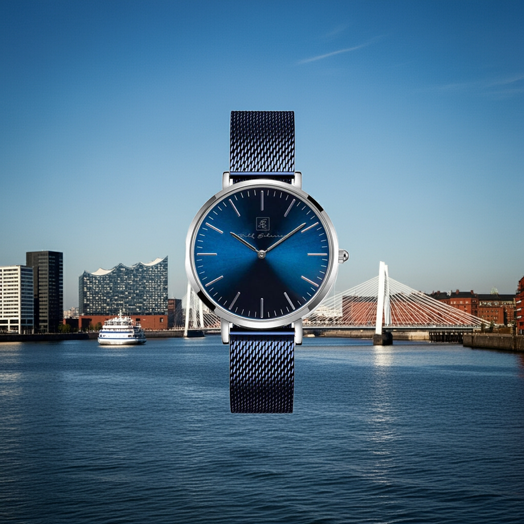 Der Magnet für Komplimente! Armbanduhr “Hamburg” 32 mm / 40 mm mit blauem Armband und blauem Ziffernblatt